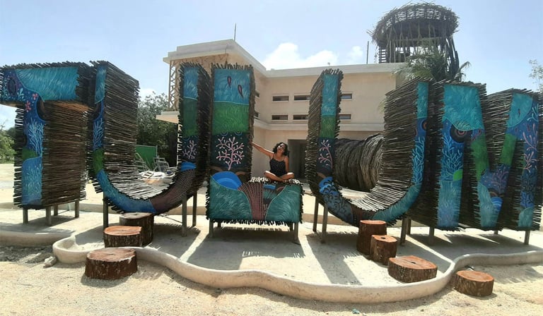 1) Mural en letras gigantes.