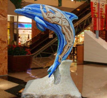 Descripción: Cubierta de mosaico sobre escultura de delfín
